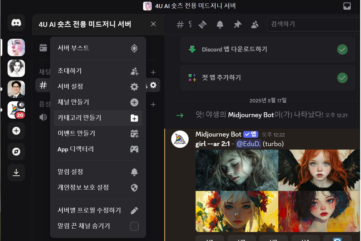** 미드저니 디스코드 서버 만들기