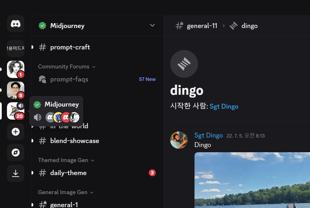 ** 미드저니 사이트 내에서 '카테고리와 채널' 만들기