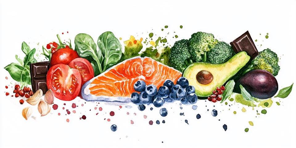빨간색(토마토), 주황색(당근), 초록색(시금치), 보라색(가지), 흰색(마늘) 등 다양한 색깔의 채소·과일은 각각 다른 항산화 성분을 함유하고 있어, 조합 섭취가 중요합니다. ‘컬러푸드’ 전략이 그 대표적 접근입니다.