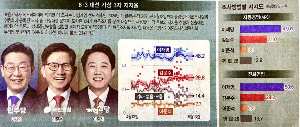 | 2025 대선 대통령 후보 공약 한눈에! 경제·외교·노동 분야 총정리(대선후보 여론조사, 지지율 포함) (1) | 2025.05.14 |
